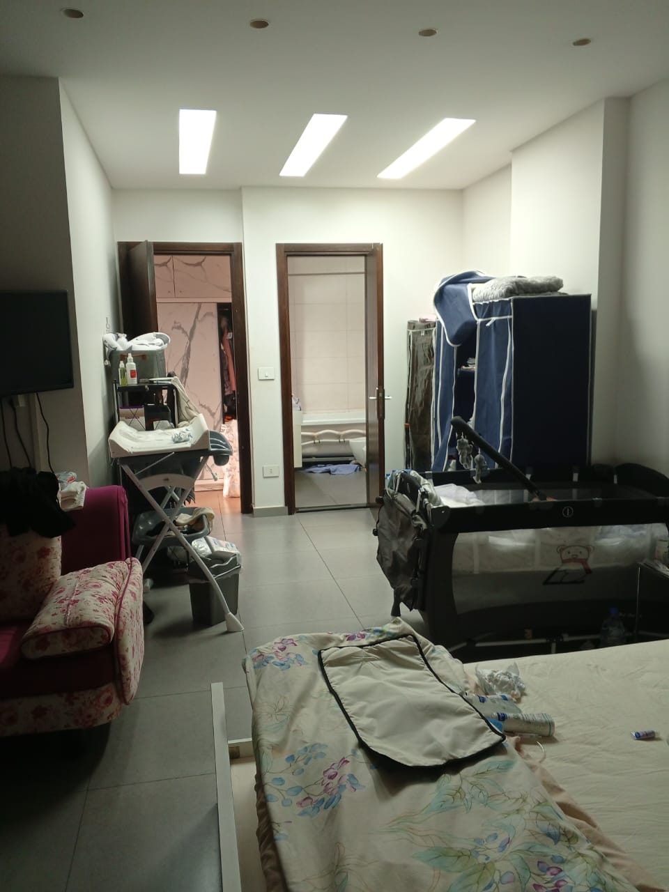 The apartment features central air conditioning and heating, ensuring year-round comfort.